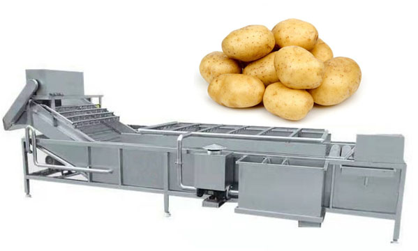 Air bubble cleaning machine is mainly through the bubbling, surfing and cleaning spray three way clear, make wash bean sprouts cleaner, more thorough. Air bubble cleaning machine made by the stainless steel material, with high pressure fan, high pressure water impact, vegetable soak, clean, desalting effect.So after the potatoes are cut into slices or strips, they are transported to the bubble washing machine. With constant bubbling water, the cut potatoes are cleaned thoroughly.